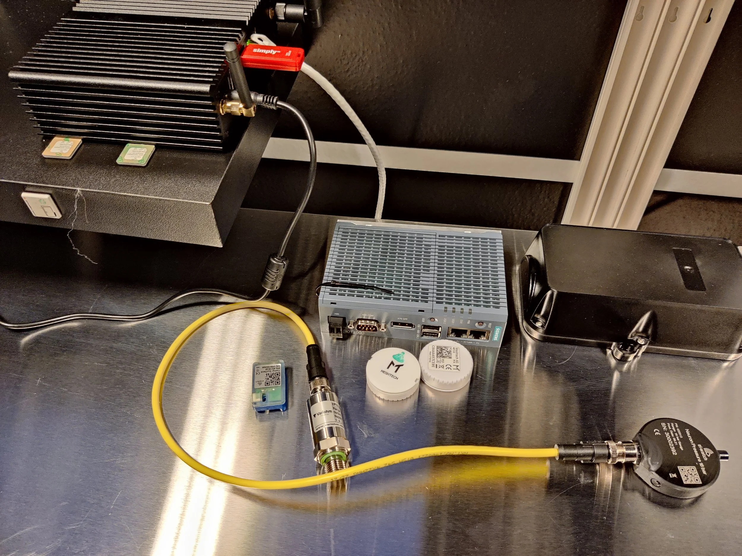 Omron har kommet med en koffert med ulike sensorer styrt med PLS. Med over 1000 sensorer å velge mellom, har OMRON valgt ut et knippe sensorer. For å kunne ta data herfra og andre PLS komponenter er det satt opp en «Edge-gateway» fra DIGITREAD. Denne maskinen konverterer datastrømmen til data som kan sendes til skyen. I mange tilfeller sender den kun opp relevant data. Altså data innenfor et visst tidssegment eller ved unormaliteter. Dette fordi mengden data fra en PLS ofte er veldig stor. Ved å ha en Industriell «Edge»- enhet kan man også sende signaler ned igjen altså styre maskiner fra en APP.